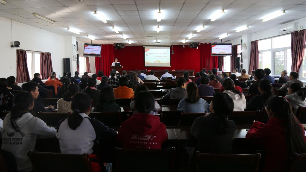 陈教授从十九大的地位、成果以及党的一贯做法上,强调了为什么要学习十九大精神;从时代背景、主要内容、历史地位、实践纲领四方面阐述了十九大精神学什么;最后提出十九大精神怎么学:按照上级要求学、结合思想实际学、指导岗位工作学。陈教授的宣讲高屋建瓴、深入浅出,思想性、理论性、针对性都很强,对我们进一步学习宣传贯彻党的十九大精神具有很强的指导意义。与会人员认真听讲,现场学习氛围浓厚。