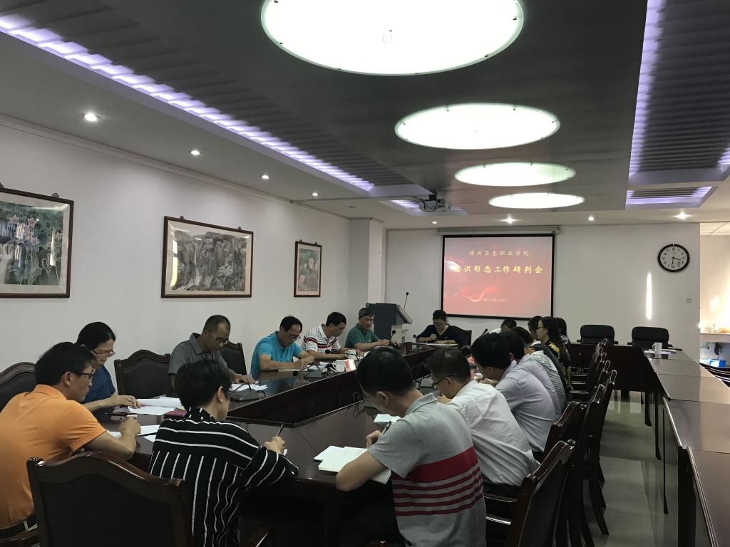 9月27日下午,学院党委在行政楼五楼会议室召开2017年下半年意识形态工作研判会,会议由党委副书记郑长江主持,党委书记林忠、各党总支书记、相关部门负责人出席会议。