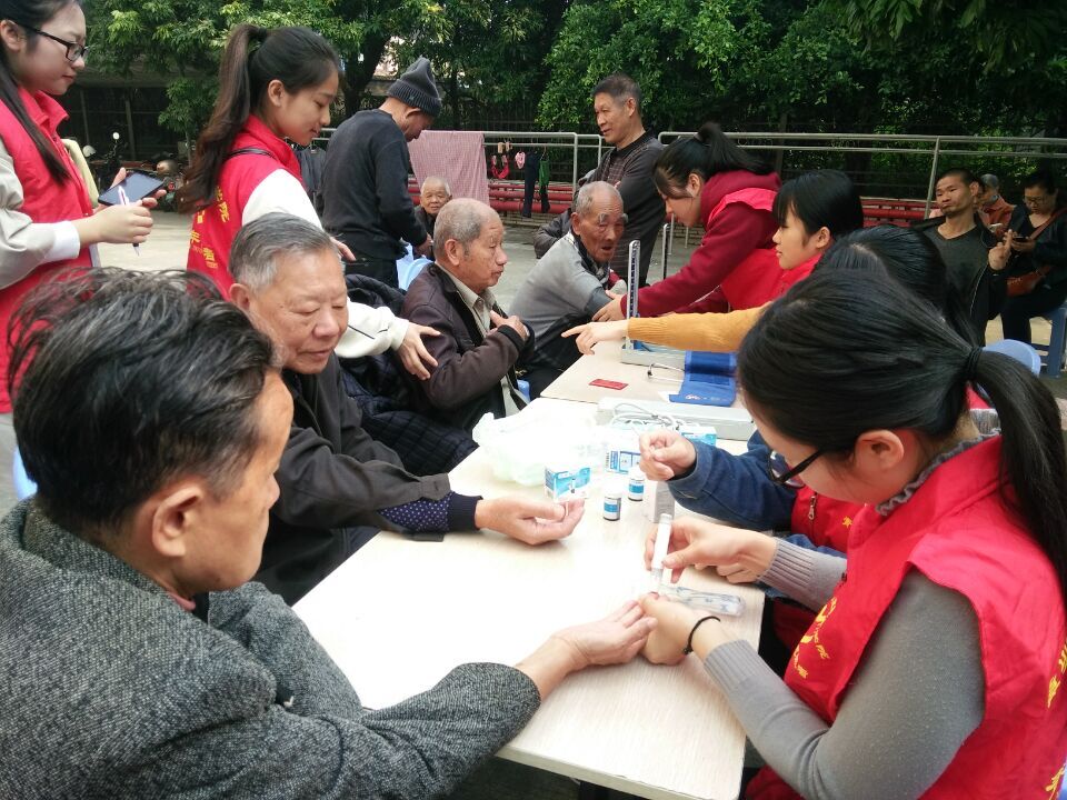康复队的服务对象是福利院的老人,主要服务内容有:量血压、保健按摩、健康咨询等。精神关怀队、生活护理队的服务对象是湖内社区的居民,主要服务内容是量血压、与社区居民交流、与老人谈心;教居民如何对躺在床上的病患进行皮肤护理、口腔护理、喂食、喂药、床上翻身、擦浴等,并有针对性地开展春季养生知识宣传。