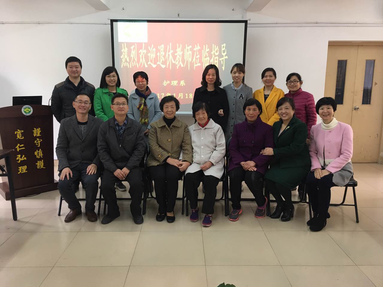1月18日,护理系慰问退休教师活动圆满结束。护理系班子首先走访慰问黄碧珍老师,正逢前辈92岁生日,学院的关心和祝福使老人倍感温暖快乐。随后,赵添金、林月惠和周美卿等三位退休老师受邀来到学院,与系领导和教研室主任举行茶话会,护理系二代人济济一堂,共同畅谈学院的快速发展,共同憧憬学院的美好未来。