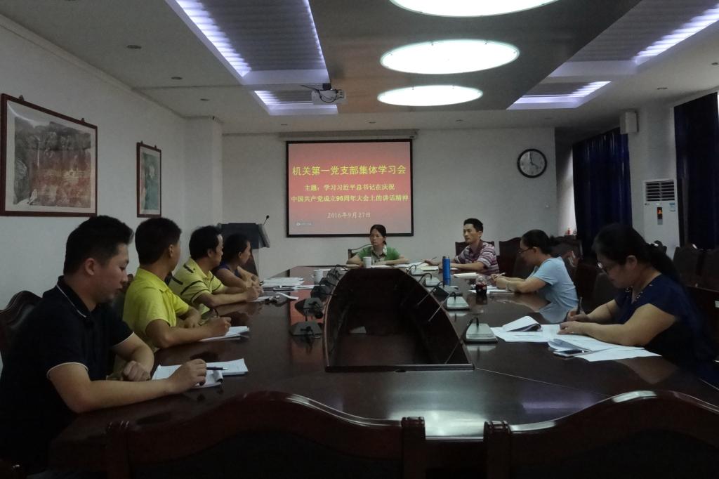 9月27日下午,机关第一党支部在行政楼五楼会议室召开专题会议,集体学习习近平总书记在庆祝中国共产党成立95周年大会上的讲话精神。党委委员、党委工作部部长蓝淑华作专题辅导报告,会议由支部书记余珊珊主持,全体支部成员参加学习并展开热烈讨论。