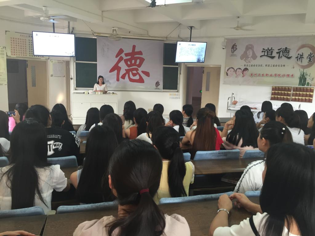 9月20日下午,由护理系党总支组织的“道德讲堂”在致馨楼108教室正式开讲,本次道德讲堂以“孝敬父母”为主题,护理系入党积极分子代表林秀丽主持,护理系师生百余人参加了此次活动。