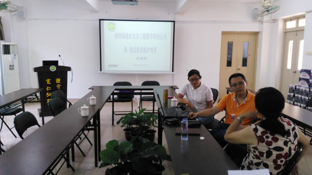 9月7日上午,福建水立方三维数字科技公司研发总监陈强莅临护理系,了解学院助产专业实训设备等建设情况,寻求合作机会。系主任和助产教研室主任等参与洽谈。