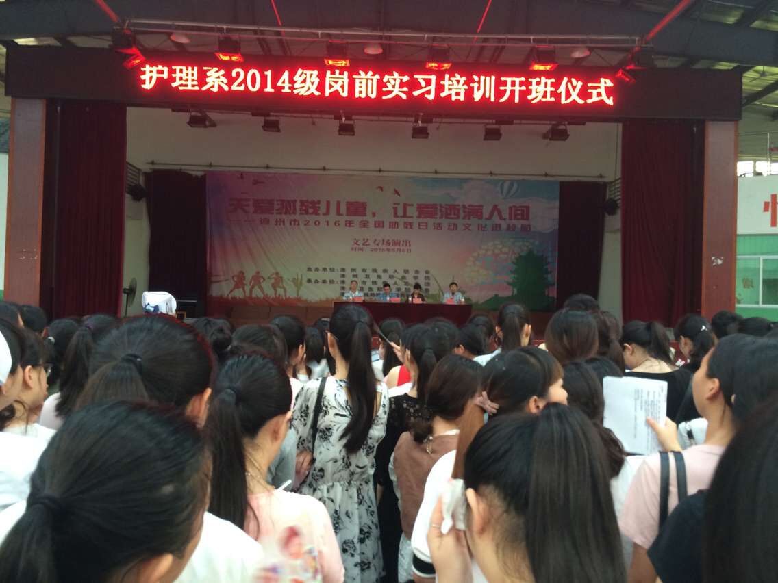 6月13日,为帮助2014级学生更好地适应临床学习工作,护理系在阳光体育馆举行了2016年下临床实习学生岗前培训动员会。出席会议的领导有学院实习科科长、护理系主任、副主任和副书记,护理系全体老师及全体下临床实习班级学生共同出席了这一隆重的动员会。会议由护理系副主任主持。