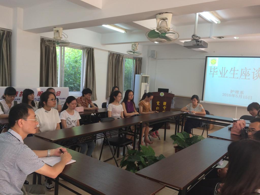 5月15日上午,护理系2016届毕业生座谈会在7号楼会议室举行。护理系领导、护理专业带头人、教学秘书及来自各班的毕业生代表共二十余人参加了本次座谈会。