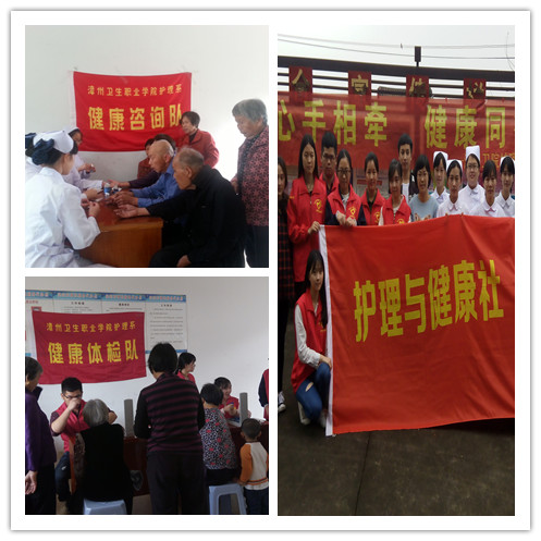 为了扩大我系专业服务队的服务范围,提高社会影响力,4月9日上午,护理系健康咨询队、健康体检队师生一行20人到芗城区天宝镇老人活动中心开展“心手相牵 健康同行”社会服务活动。