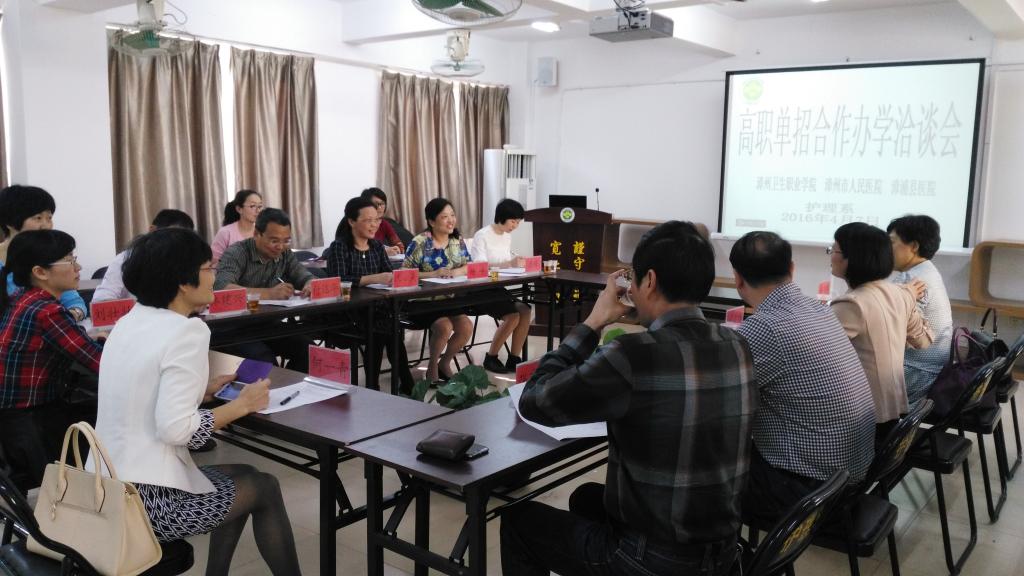 4月7日下午,漳州市人民医院、漳浦县医院领导莅临护理系,洽谈高职单招合作办学。学院副院长沈小美、教务处处长付达华、护理系主任杨峥、副主任、学工办主任和专业带头人等参与洽谈。