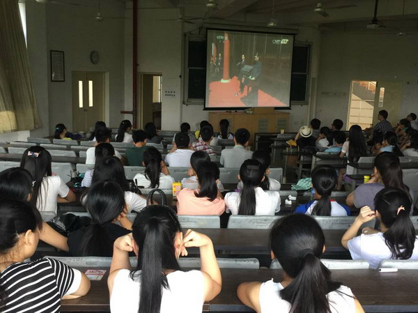 为隆重纪念中国人民抗日战争暨世界反法西斯战争胜利70周年,方便在校学生集中观看纪念大会与阅兵实况,药学系于9月3日上午开放明德楼六教,组织同学们集中观看阅兵仪式。