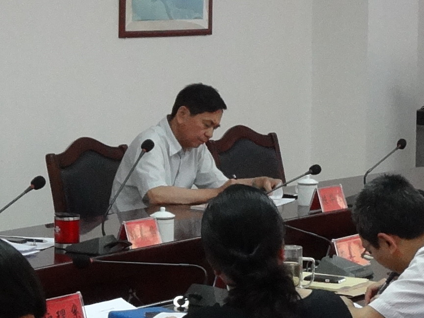 3月26日下午,我院党委理论学习中心组在行政楼五楼会议室召开扩大学习会,专题学习2015年全国、省、市“两会”精神。副院长陈华生作中心发言,院领导及各部门负责人参加学习会。会议由党委工作部部长蓝淑华主持。