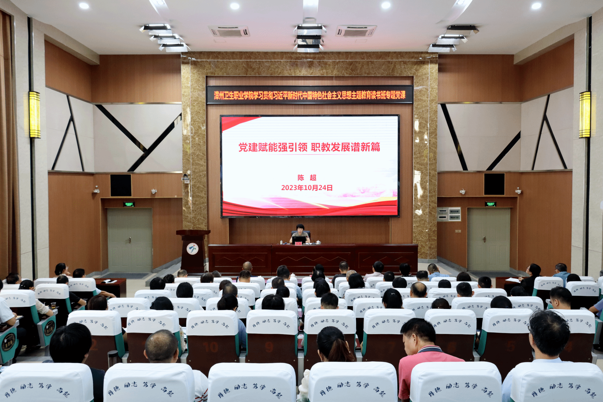 10月24日下午,我校学习贯彻习近平新时代中国特色社会主义思想主题教育读书班专题党课在学术报告厅举行,学校党委书记陈超以《党建赋能强引领,职教发展谱新篇》为题带头作专题党课。全体在家校领导、全校副科级及以上干部参加学习。