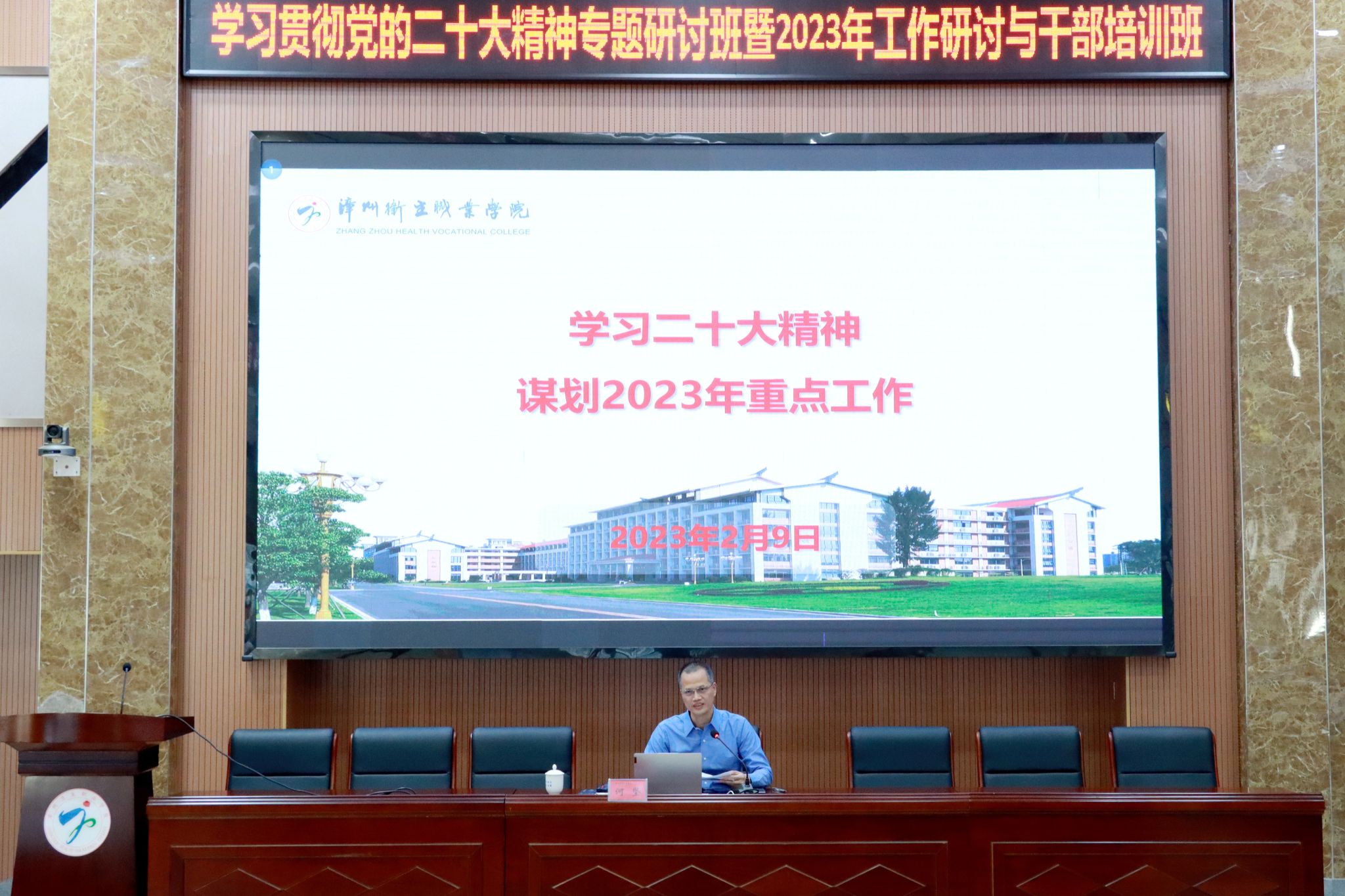 为深入学习贯彻习近平新时代中国特色社会主义思想和党的二十大精神,准确把握现代职业教育发展方向,2月8日-9日,我院举办以“凝心聚力同奋斗,踔厉奋发谱新篇”为主题的学习贯彻党的二十大精神专题研讨班暨2023年工作研讨与干部培训班,学院副科级及以上干部参加培训。