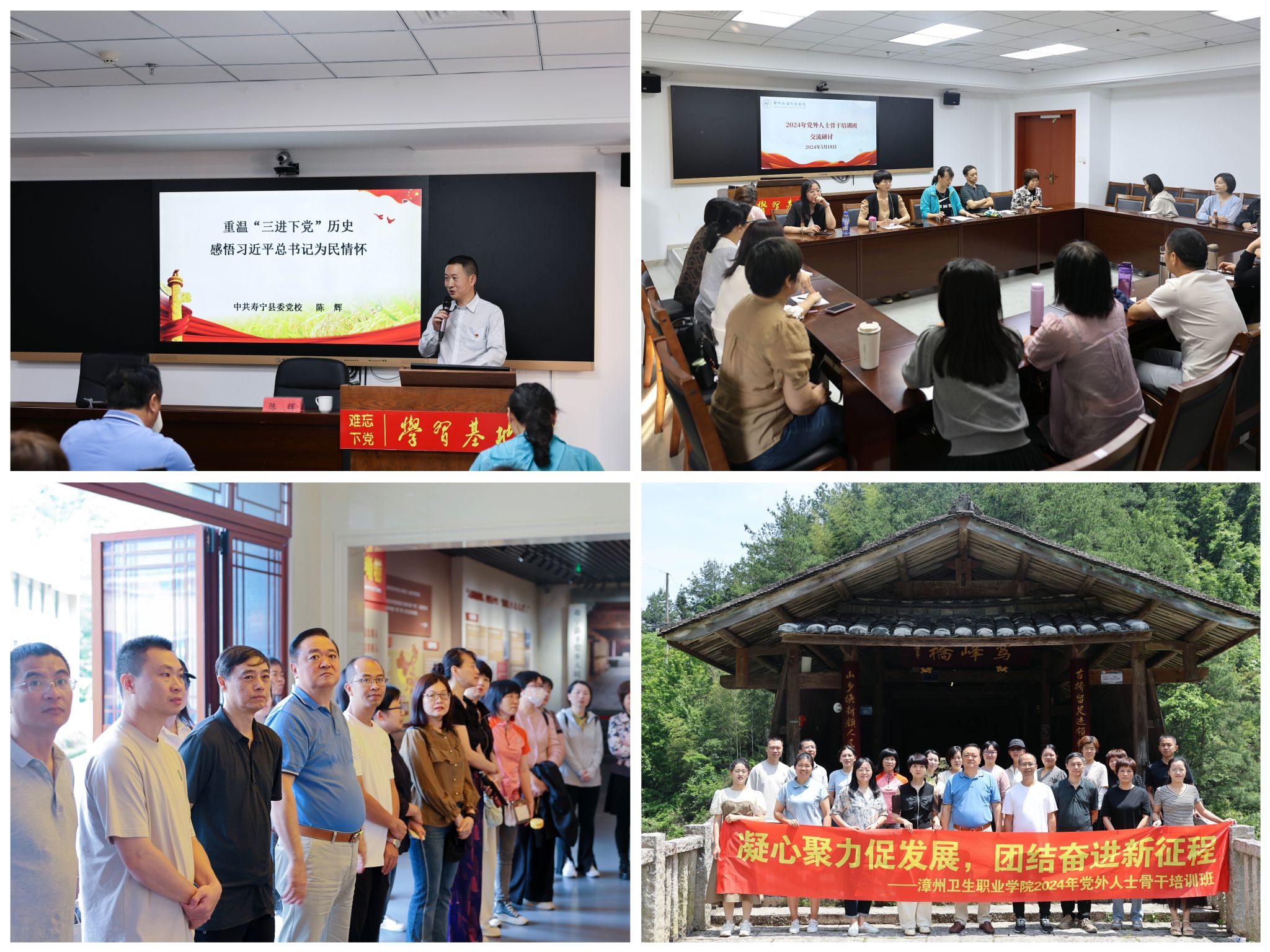 培训班邀请了寿宁县委党校陈辉作《重温“三进下党”历史,感悟习近平总书记为民情怀》专题讲座。各民主党派教师、无党派人士围绕学校专业建设、教学改革、师资队伍建设等进行交流研讨、建言献策。组织学员到“难忘下党主题馆”“党群连心路”、鸾峰桥、下岐村连家船民上岸主题展览馆等开展现场教学。