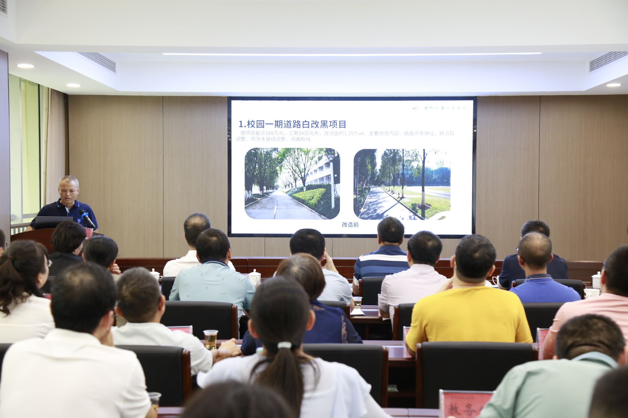 后勤管理处就暑期以来工作进展情况和接下来校园规划及建设工作进行专题汇报。学校领导班子,各部门和二级学院负责人参加会议。