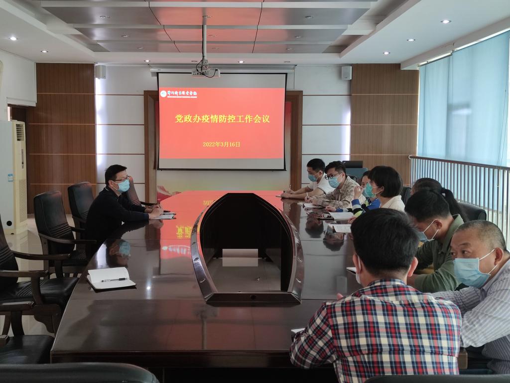 为进一步贯彻落实上级关于疫情防控工作的部署,3月16日上午,党政办公室在行政楼四楼会议室召开疫情防控工作会。会议由学院副院长、党政办公室主任蔡韶滨主持,党政办公室全体成员参加会议。