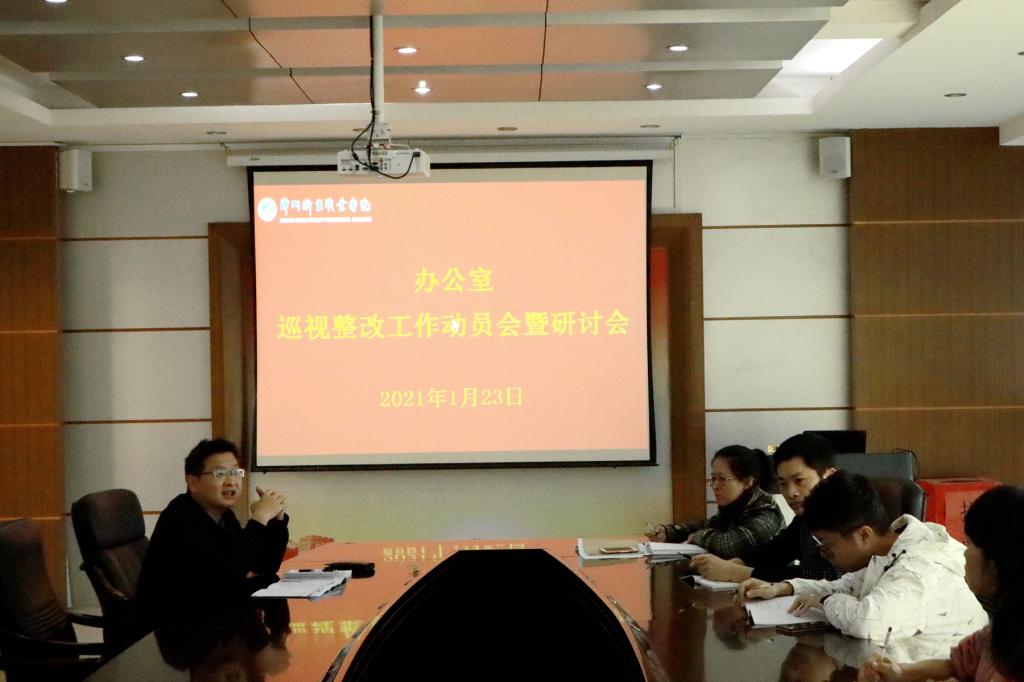 1月23日上午,办公室在行政楼四楼会议室召开巡视工作整改动员会暨研讨会,会议由办公室主任蔡韶滨主持,处室干部职员参加会议。