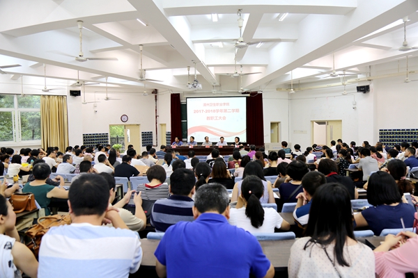 7月2日上午,我院在明德楼三教召开2018年上半年教职员工大会,学院领导林忠书记、沈国星院长、纪委宋志海书记、沈小美副院长、房立平副院长、陈义三副院长,及全体教职员工参加会议,会议由宋志海书记主持。