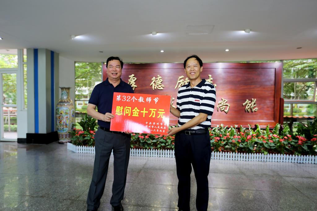 在教师节即将来临之际,9月7日下午,市委书记陈家东,市委常委宣传部部长阮开森,市人大常委会副主任李珊珊及市委办、教育局、卫计委主要负责人莅临我院亲切看望慰问教职员工,并向学院广大教师致以崇高的敬意和节日的问候。