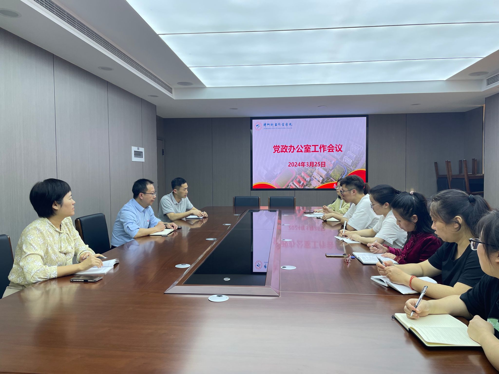 3月25日下午,党政办公室在行政楼第二会议室召开部门工作例会。会议由党政办公室主任主持,党政办公室全体成员参加会议。