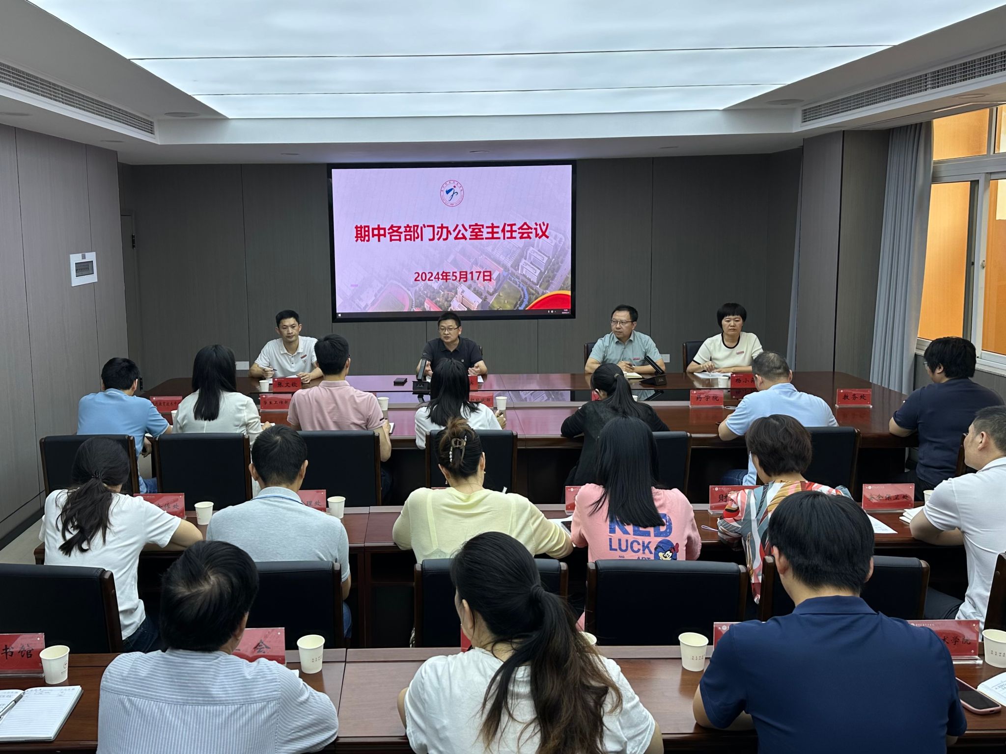 5月17日下午,我校召开各部门办公室负责人期中工作会议,副校长蔡韶滨出席会议并讲话,二级学院党政办公室主任(含负责人)和相关部门办公室主任、学校党政办全体人员参加会议,会议由学校党政办公室主任主持。