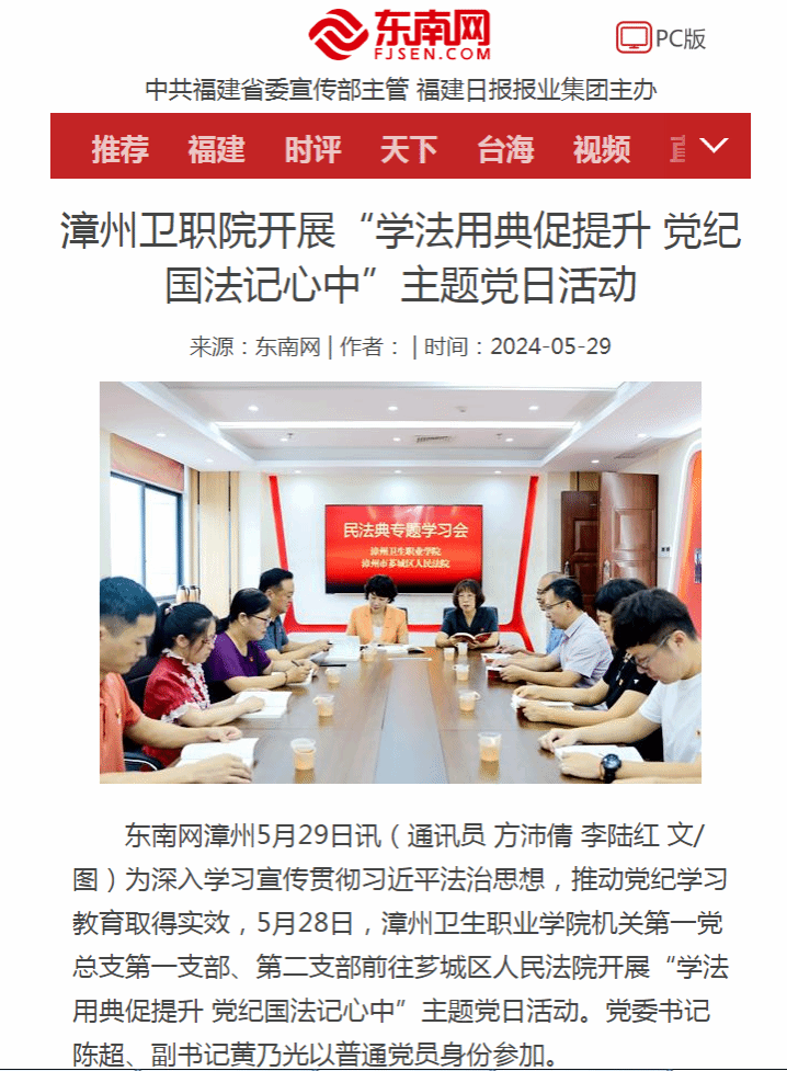 东南网:漳州卫职院开展“学法用典促提升 党纪国法记心中”主题党日活动