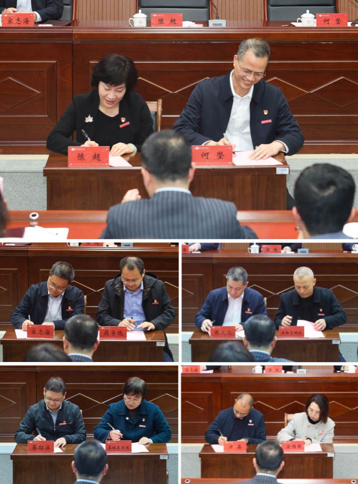 陈超和党委委员、党委委员和分管联系部门分别签订了2025年全面从严治党责任书。校党委委员、纪委委员、各党总支书记和纪检委员、各党支部书记和纪检委员以及全体副科级及以上干部参加会议。