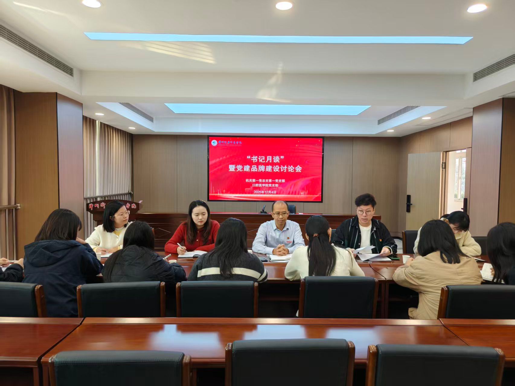 为全面提高机关党建质量,推进党建与业务深度融合,深化党建品牌创建工作,12月4日上午,机关第一党总支第一党支部与共建的口腔医学院党支部在行政楼第三会议室开展“书记月谈”暨党建品牌建设讨论会。支部全体党员参加会议。