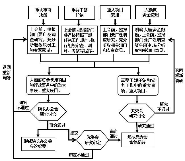 以上为“三重一大”制度工作流程,“三重一大”事项主要内容、决策机制、程序和议事规则可查询《漳州卫生职业学院关于执行“三重一大”决策制度的实施办法》(漳卫职委〔2016〕12号)。