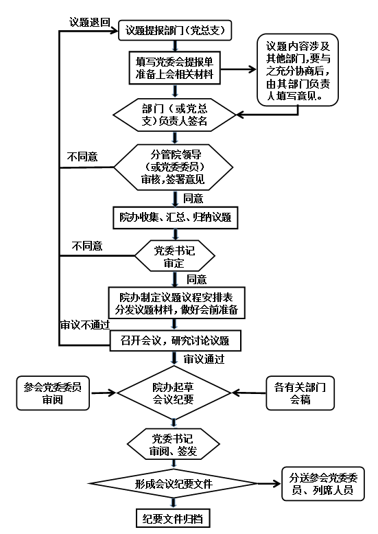 1.凡提交党委会讨论的议题,各主办的系部、处室、直属科必须做好充分调研,若涉及协办部门事先要进行充分协商,重大事项应有充分论证。