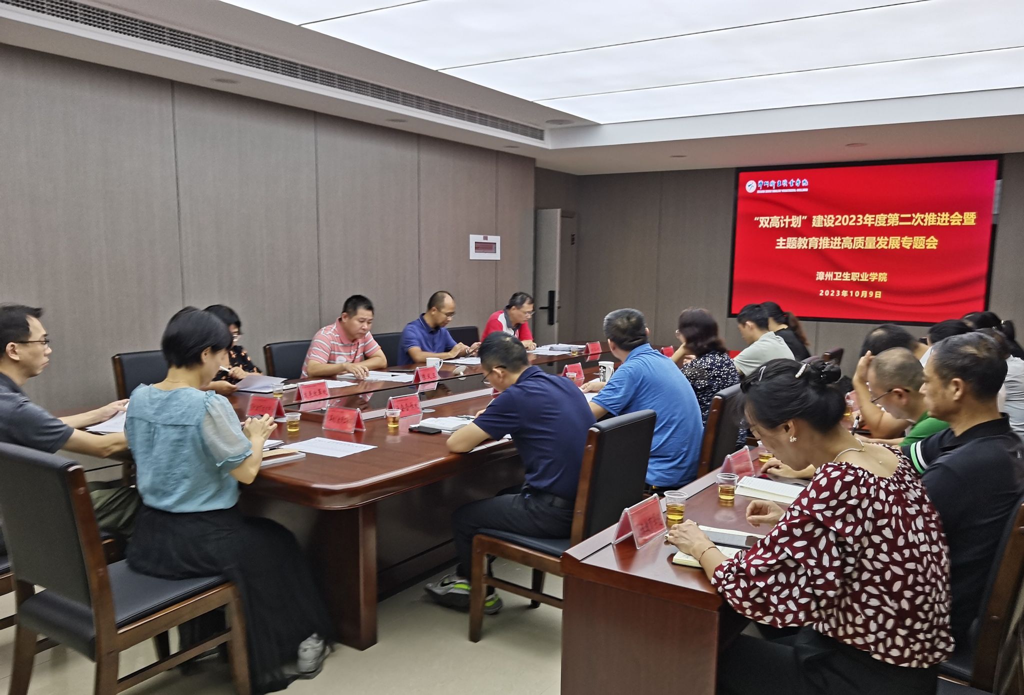 为推动学习贯彻习近平新时代中国特色社会主义思想主题教育走深走实,10月9日下午,学校在行政楼第二会议室召开“双高计划”建设2023年度第二次推进会暨主题教育推动高质量发展专题会,十大任务负责人、财务处负责人及二级学院院长参加会议。会议由副校长陈义三主持。