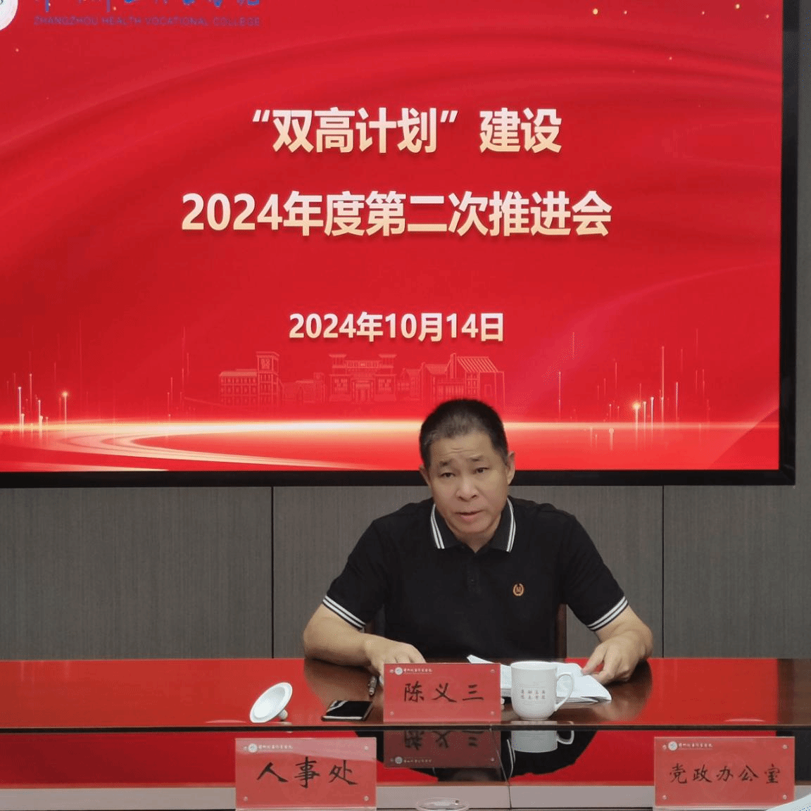 10月14日上午,学校在行政楼5楼第二会议室召开“双高”建设推进会。副校长陈义三主持会议并讲话,十大任务负责人、二级学院院长、财务处及发展改革处全体人员参加会议。