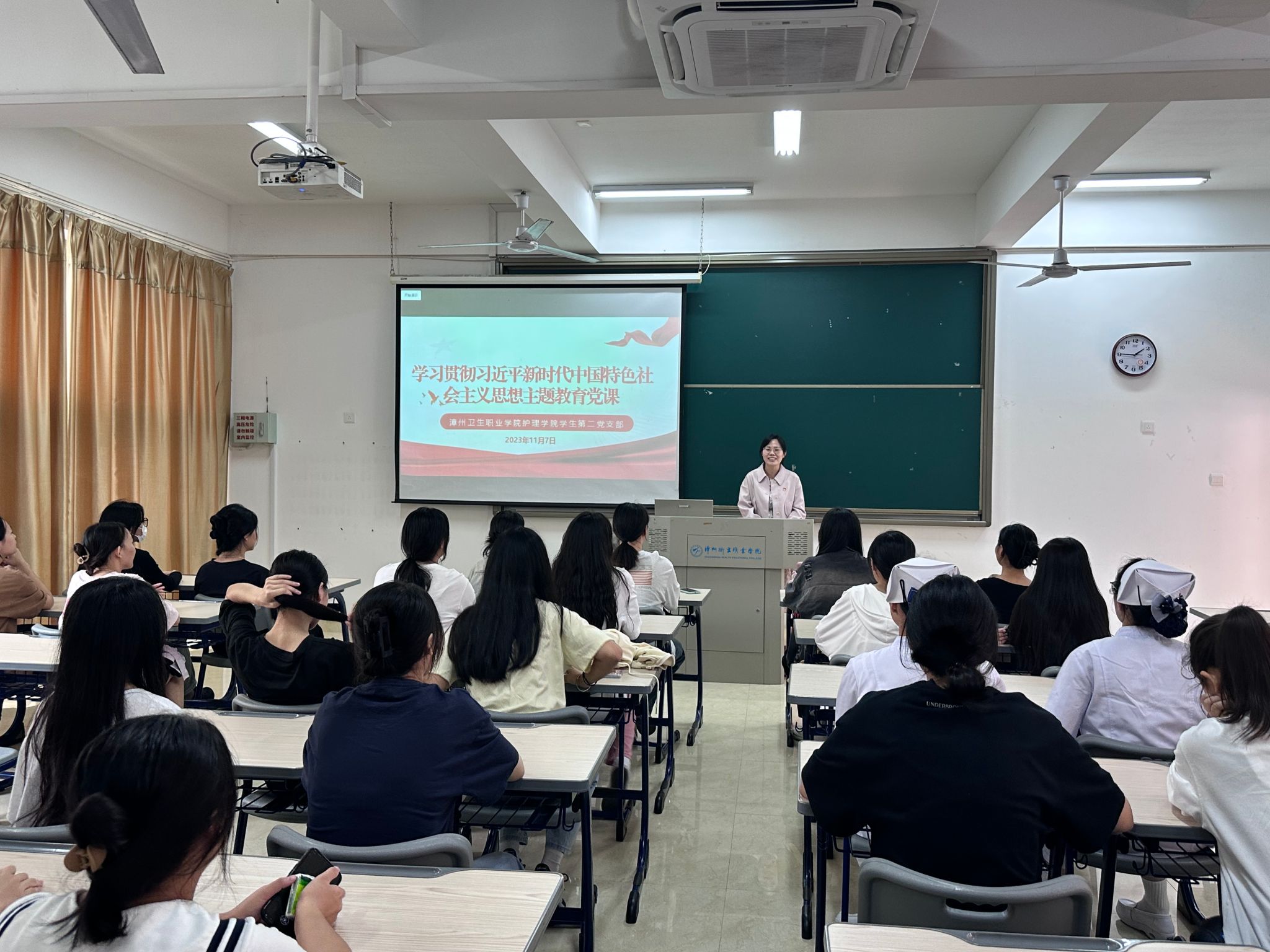 11月7日,护理学院学生第二党支部书记走进课堂,于励志楼205给22级护理9班学生讲授专题党课,教育引导学生树立正确价值观。