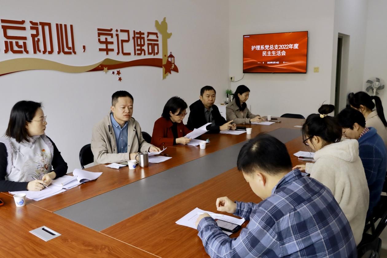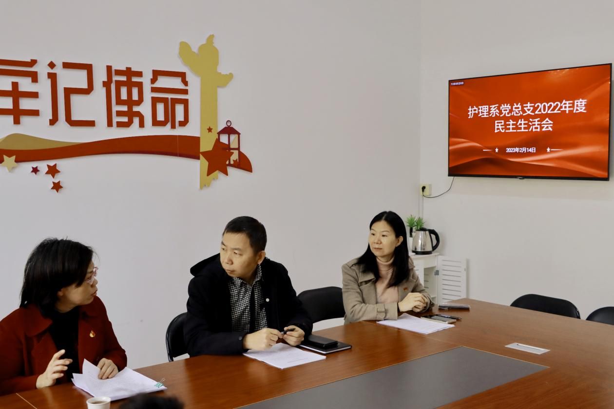 2月14日,护理系党总支于厚德楼203召开2022年度民主生活会,学院党委委员、副院长沈小美到会指导,民主生活会由党总支书记主持,全体总支委员参加。