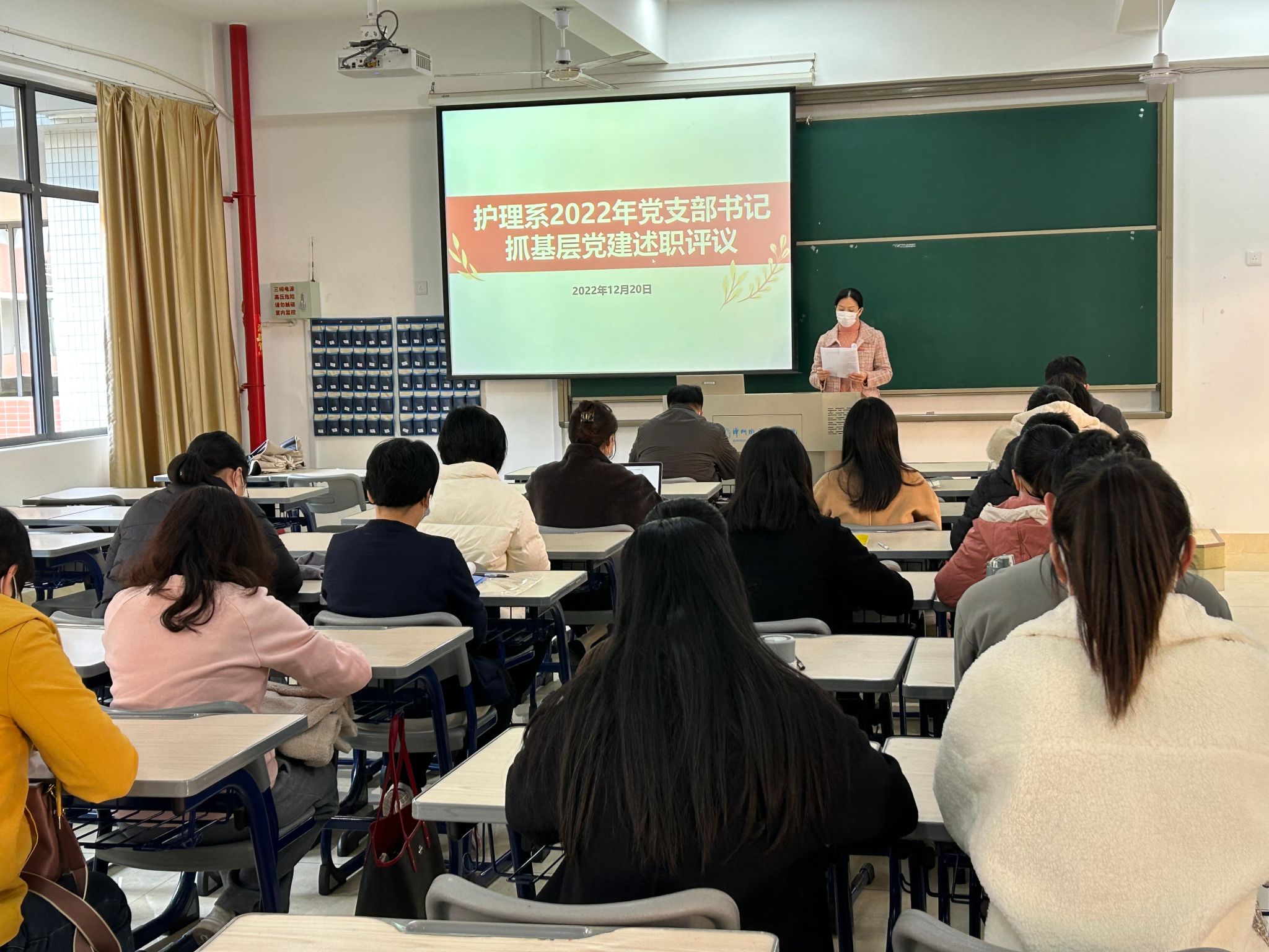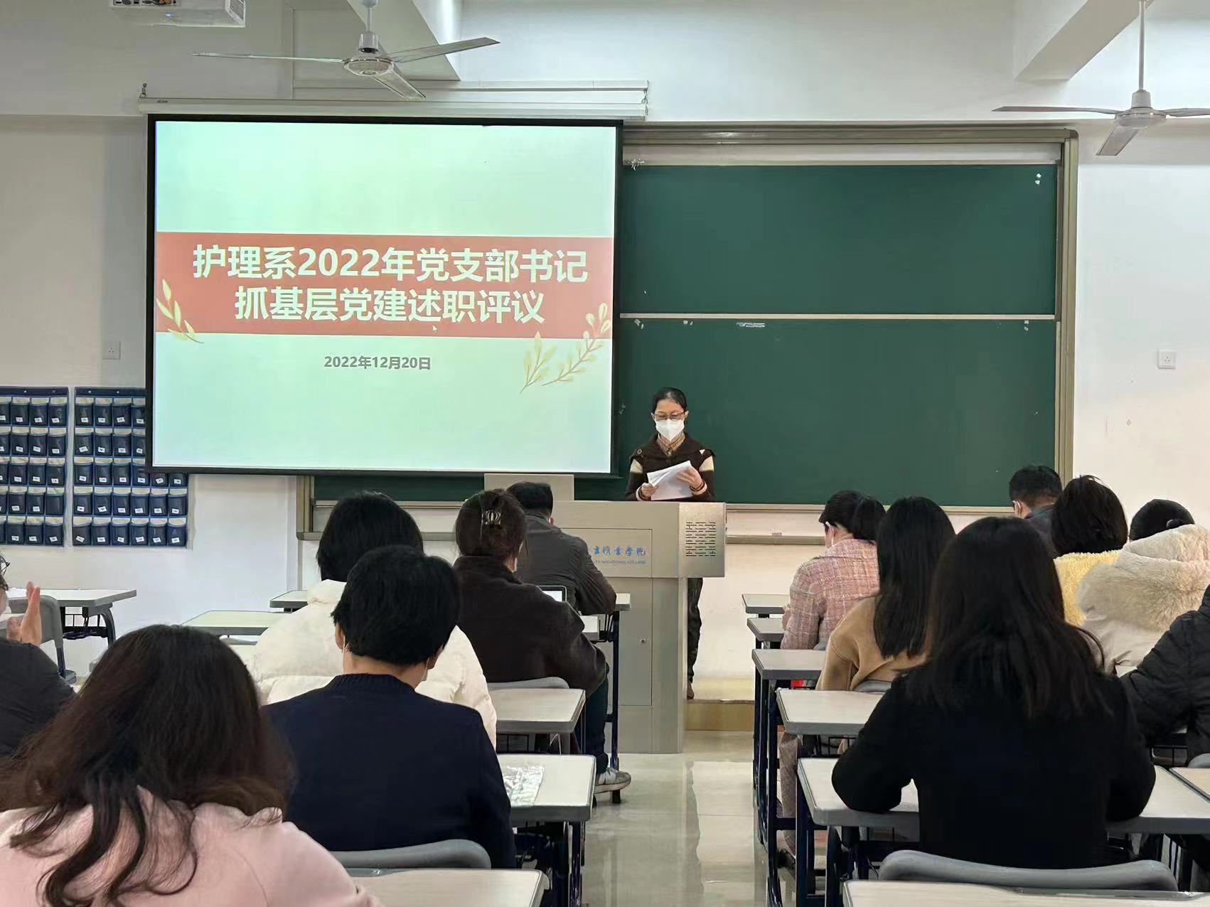 2022年12月20日,护理系党总支召开2022年度支部书记抓基层党建工作述职报告及评议大会。会议由护理系党总支书记主持,总支委员、各支部委员以及部分党员教师代表参加本次大会。
