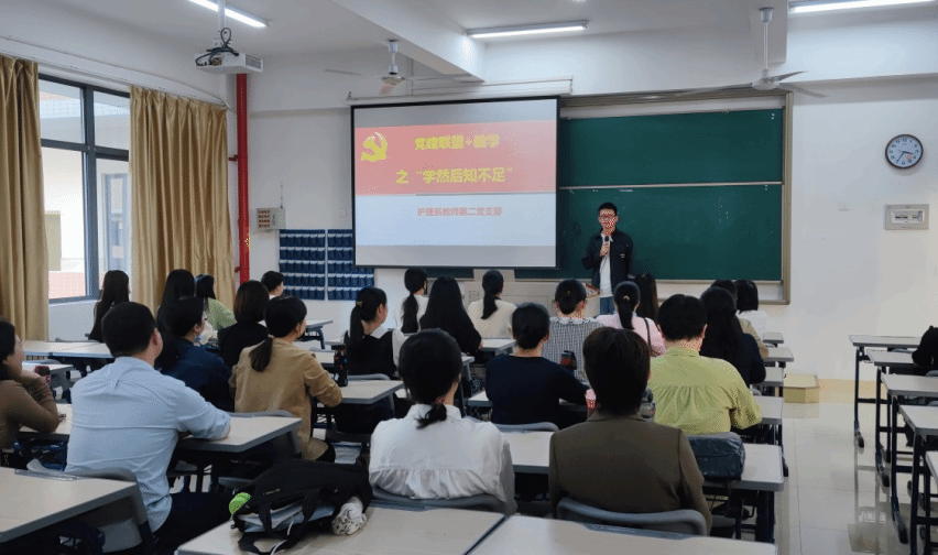 经过前期的工作部署,11月8日,护理系教师第二党支部与学生第一、第二支部进行共建,开展本学期第一次党建联盟促教学活动。本期活动主要目的是解学生学习困惑,主题为“学然后知不足”。分“学生谈学习疑惑、优秀学生分享学习经验、教师指点迷津”三个环节进行。会前,学生代表在同学中收集整理“如何提高学习效率,如何改善学习动力不足、提升学习自律性自觉性”等问题,并由学生代表在会上发言,之后优秀学生分享学习经验,教师针对学生所提问题答疑解惑。