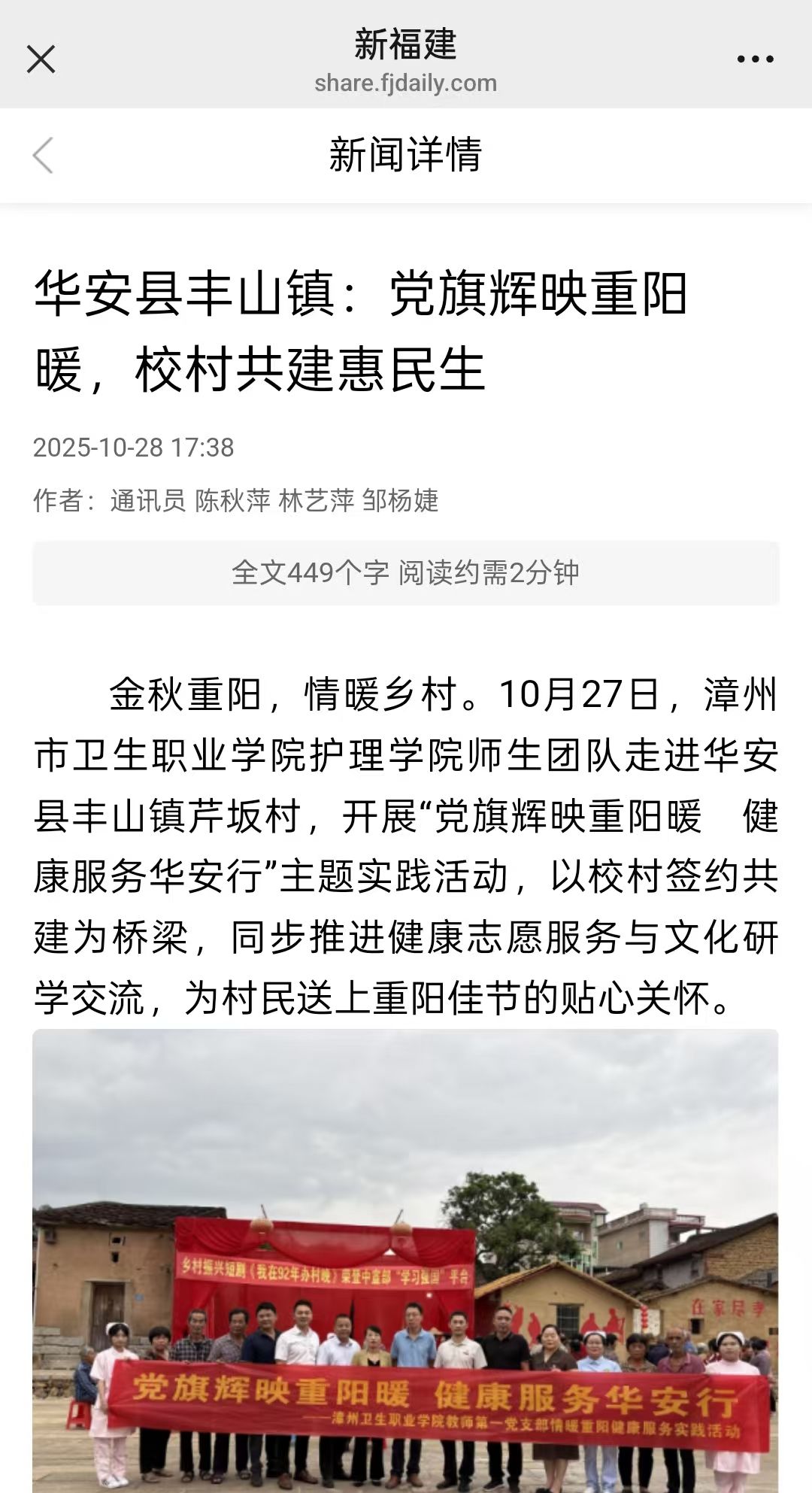新福建:华安县丰山镇:党旗辉映重阳暖,校村共建惠民生