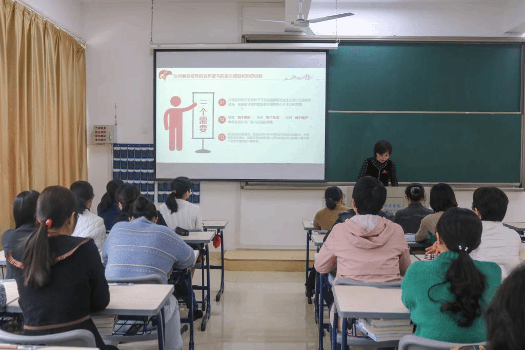 11月23日,护理系教师第二党支部挂钩领导沈小美副院长于励志楼为支部党员讲授党的十九届六中全会精神专题党课。