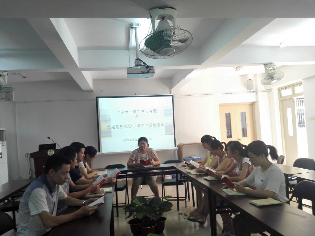 为深入贯彻落实党中央、省委、市委和学院、系部关于“学党章党规、学系列讲话,做合格党员”学习教育的精神,5月24日上午,护理系学生第一党支部全体党员在七号楼二楼会议室召开以“坚定理想信念、增强‘四种意识’”为专题的学习会议。
