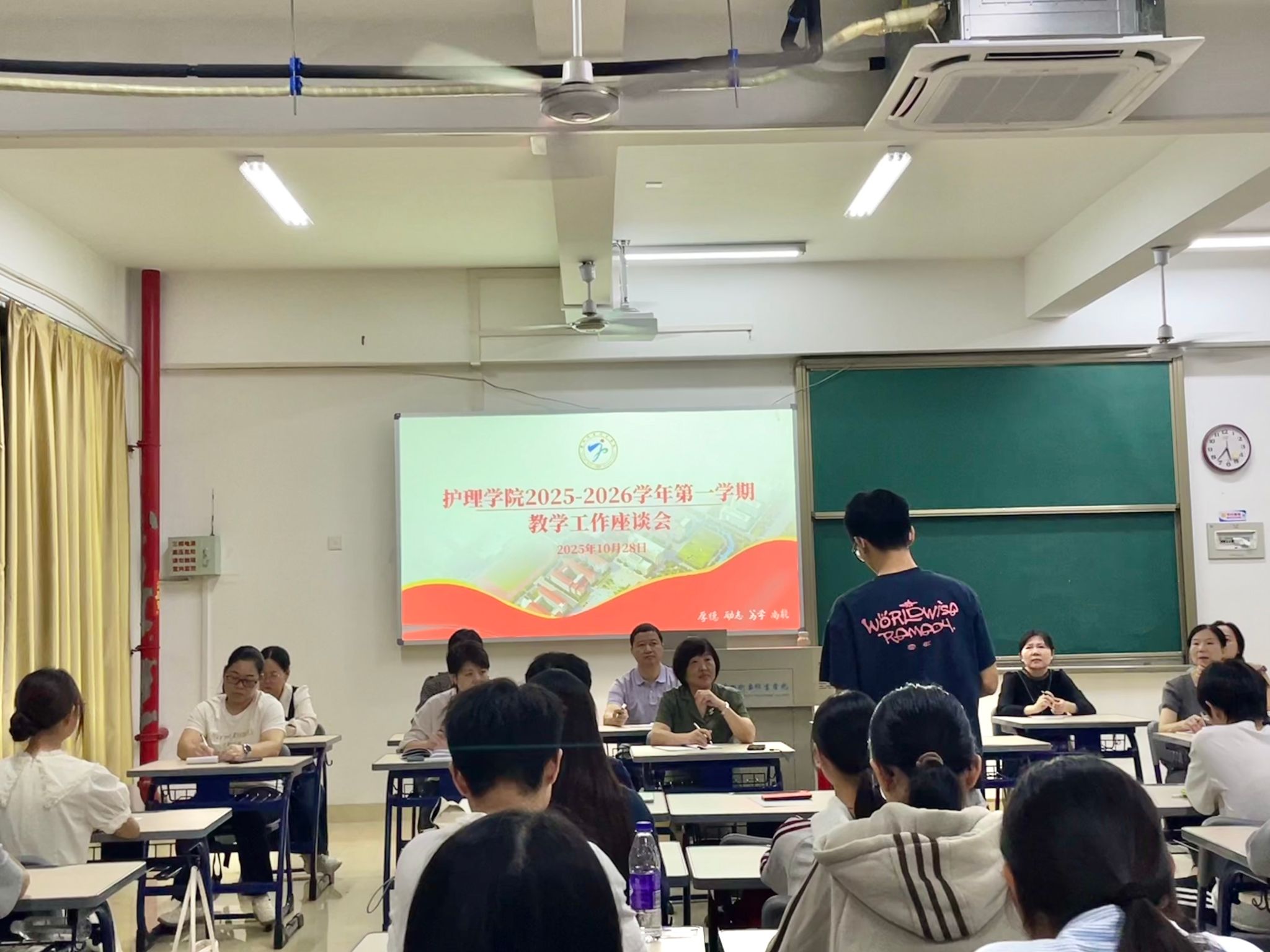 10月28日下午,我院于励志楼205组织召开2025-2026学年第一学期教学工作座谈会。会议由学院执行院长主持,学院领导班子成员、各教研室教师代表、辅导员及2025级各班学生代表参会。