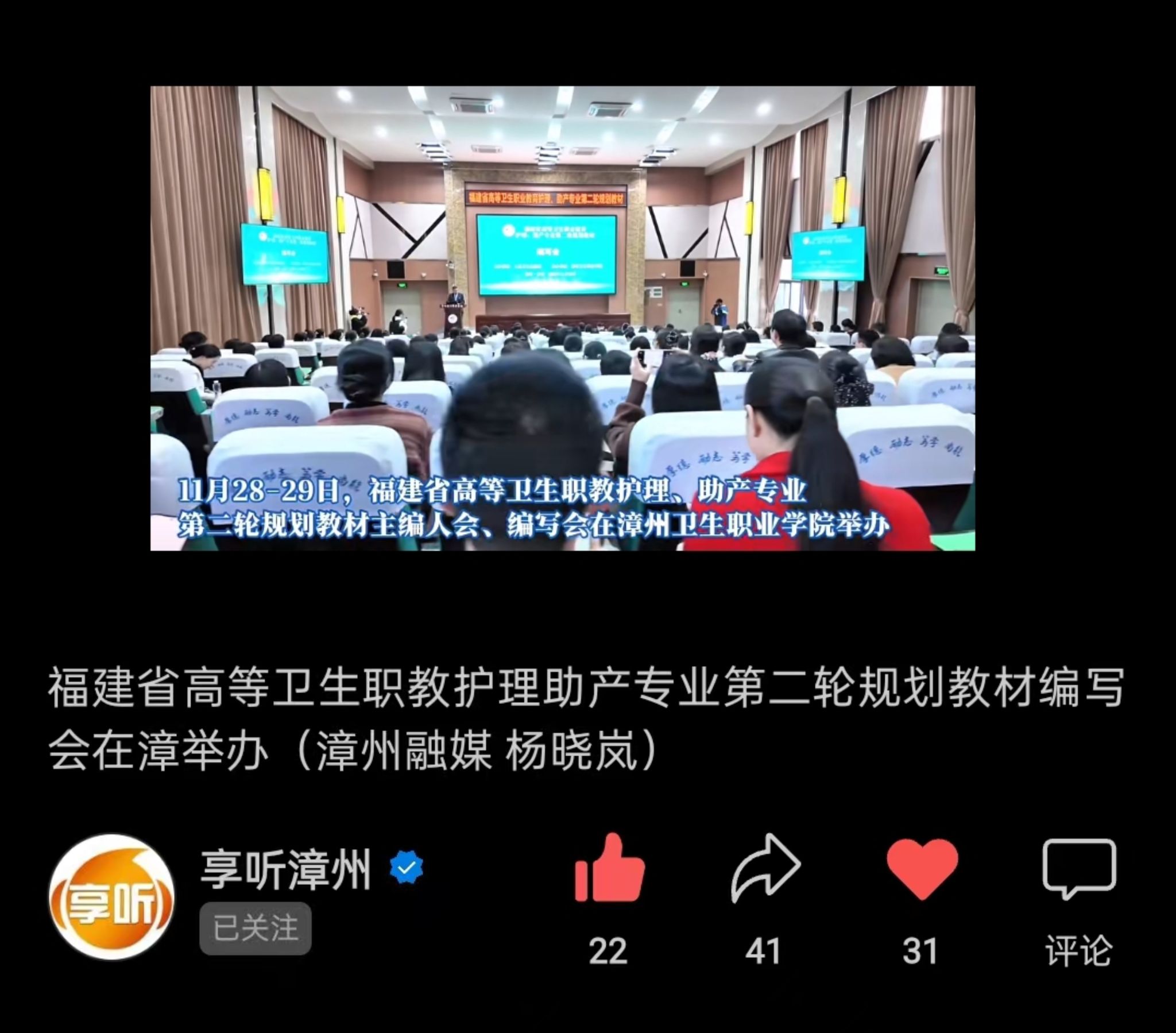 享听漳州:福建省高等卫生职教护理助产专业第二轮规划教材编写会在漳举办