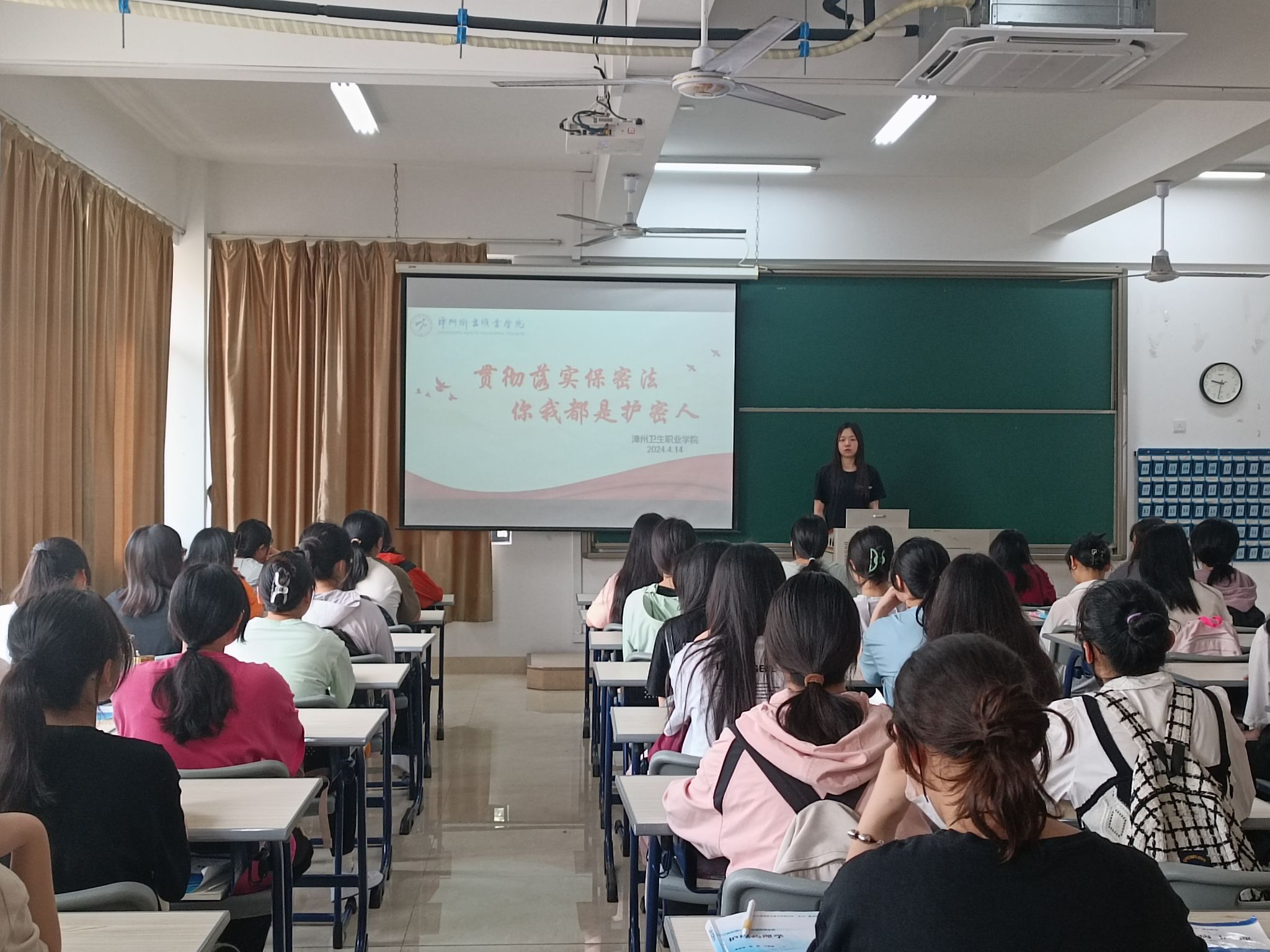 开拓宣传渠道,营造浓厚氛围。我院始终把国家安全教育纳入学生日常,灵活运用新媒体全方位进行国家安全知识宣传展播。同上一堂大课,共筑国家安全。组织师生同上一堂国家安全教育课暨大学生退伍士兵事迹分享会,专家结合真实案例阐释新时代国家安全的内涵,退役复学学生以自身军旅经历鼓舞在校大学生为国家安全奉献青春力量。召开主题班会,厚植安全意识。各班级开展以“贯彻落实保密法,你我都是护秘人”为主题的班会,通过观看视频、分组讨论等方式,教育广大学生自觉维护国家安全。发动知识答题,检验学习成果。发动全体师生参与“国家安全知识答题”竞赛活动,实现答题对象全覆盖,进一步强化我院师生国家安全意识。