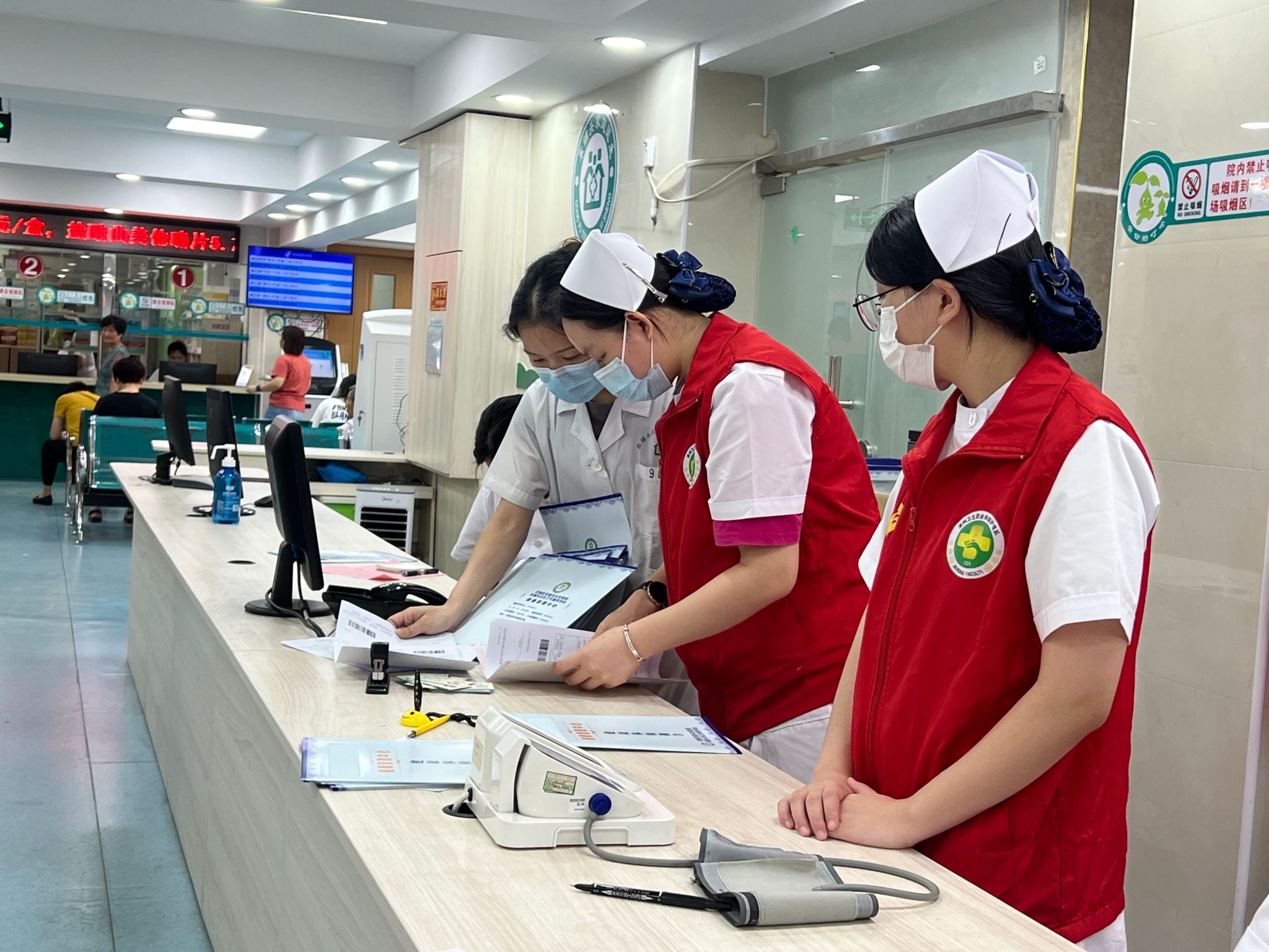 为迎接即将到来的国庆节,更好地服务社区群众,引起群众对于身心健康的重视,9月30日,我院志愿者前往东铺头社区卫生服务中心开展“迎国庆,便民行”志愿活动,为群众医疗就诊提供帮助,全面提升群众自我保健意识,帮助群众建立科学、文明、健康的生活方式。