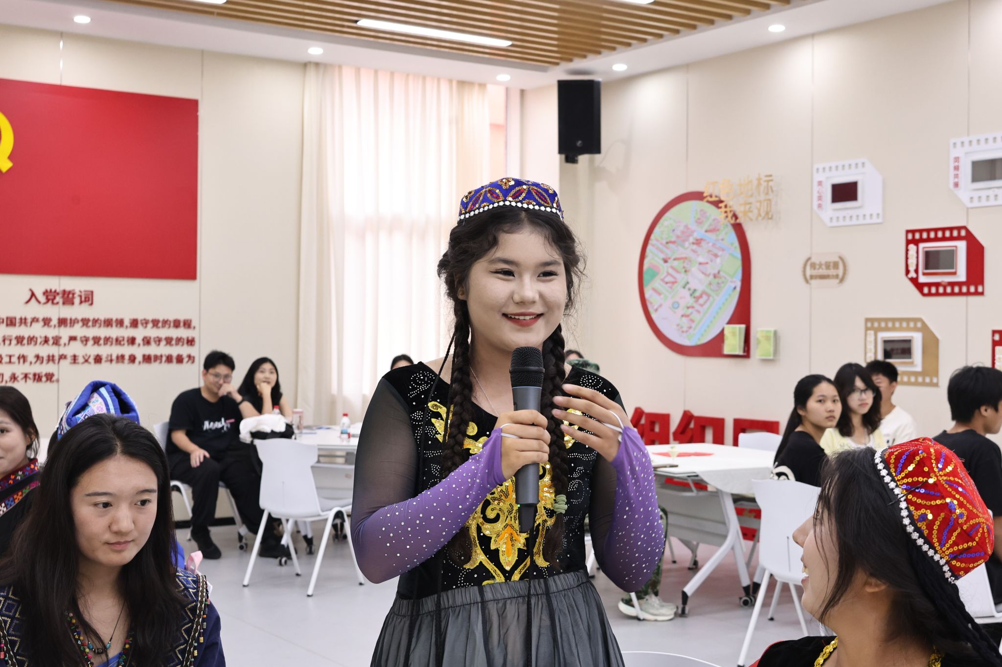 茶话会以多重互动筑牢团结根基。石榴签到绘同心。新生领取民族服饰贴纸画上专属笑脸,并在“石榴造型”展板上绘成“团结同心圆”,开启温暖序章。美食方言传情谊闽南四果汤、新疆馕等特色美食同台,各族学子分享美食故事,学说闽南语、维吾尔语等方言,笑声中拉近距离。民俗展演释魅力少数民族新生化身“文化使者”讲述古尔邦节、畲族山歌等民俗,新疆同学的维吾尔族舞蹈点燃全场。精准答疑解疑惑。茶话会暖心设置的答疑环节,教师代表和学长学姐为新生“一对一”解答学业、奖助贷、实习等疑惑。