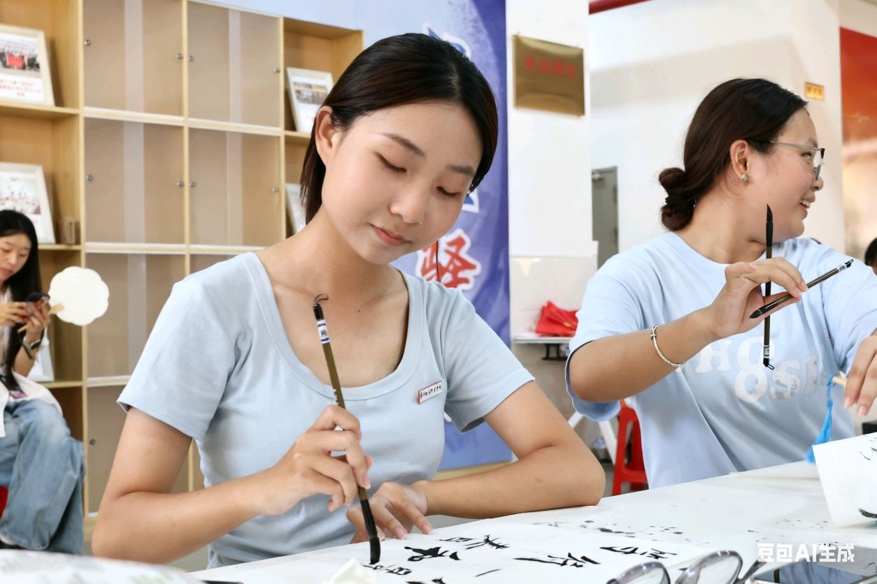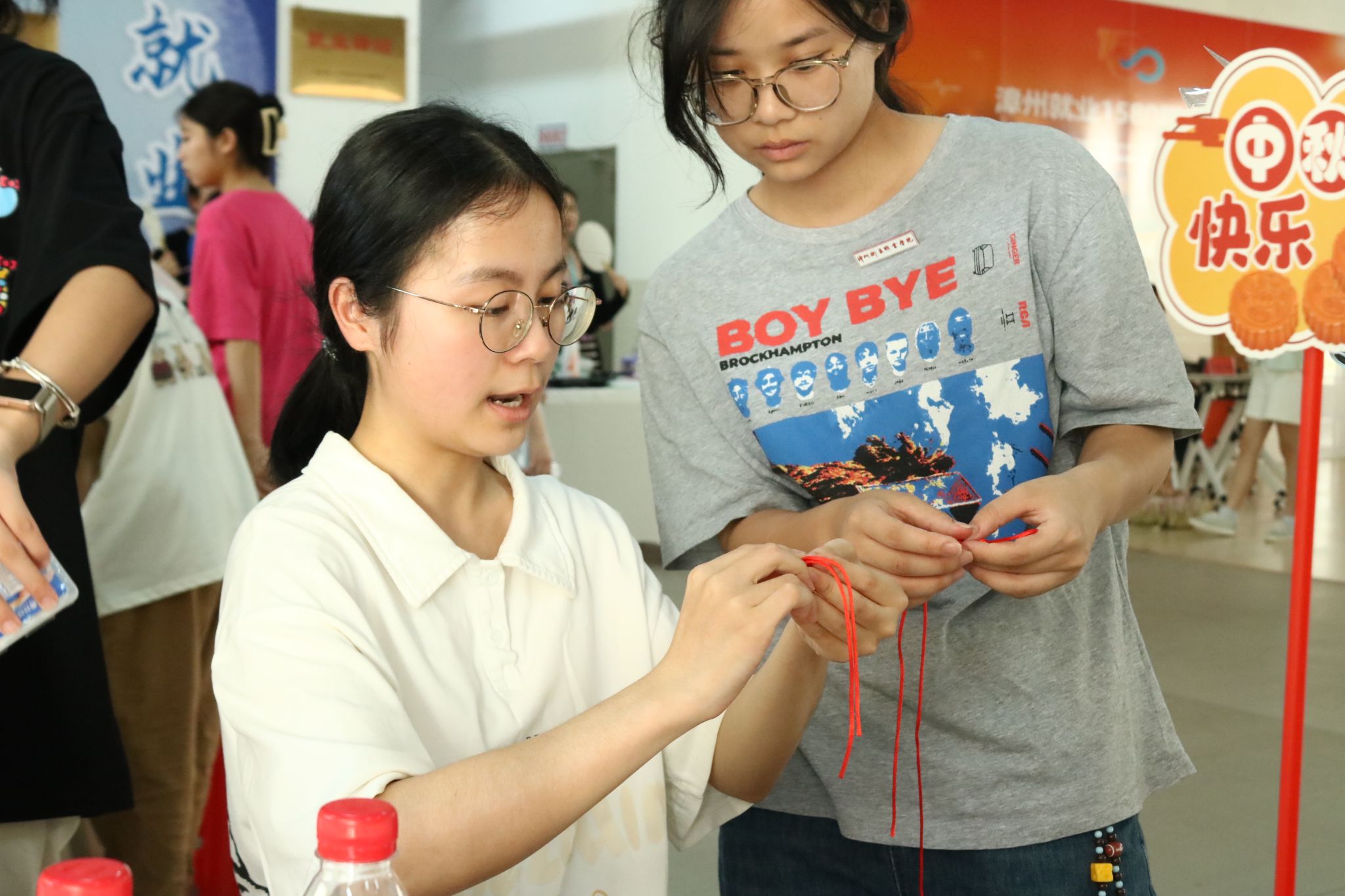 游园会现场气氛热烈,五大活动精彩纷呈,师生在喜笑颜开中提升幸福指数,于欢声笑语里深化情感联结,共同营造出浓厚的节日文化氛围。结韵中华,红绳传情,中国结DIY摊位里,一根根红绳在指尖缠绕,化作寓意吉祥的中国结,成为独特的双节纪念;墨香笔韵,书写千秋,师生用毛笔书写 “中秋快乐”“国泰民安” 等内容,一笔一划间尽显对祖国和传统文化的热爱;诗意中华,韵满双节,诗词飞花令围绕 “月”“国”“秋”等关键词开展,以诗词互动强化文化认同与爱国情怀;古韵投壶,乐在其中,趣味投壶区沉浸式体验传统游戏,丰富活动形式;月茶雅集,品香团圆,部分无法返乡的学子在共享月饼的互动中,缓解了思乡之情,让节日的温暖在味蕾与心间双重传递。