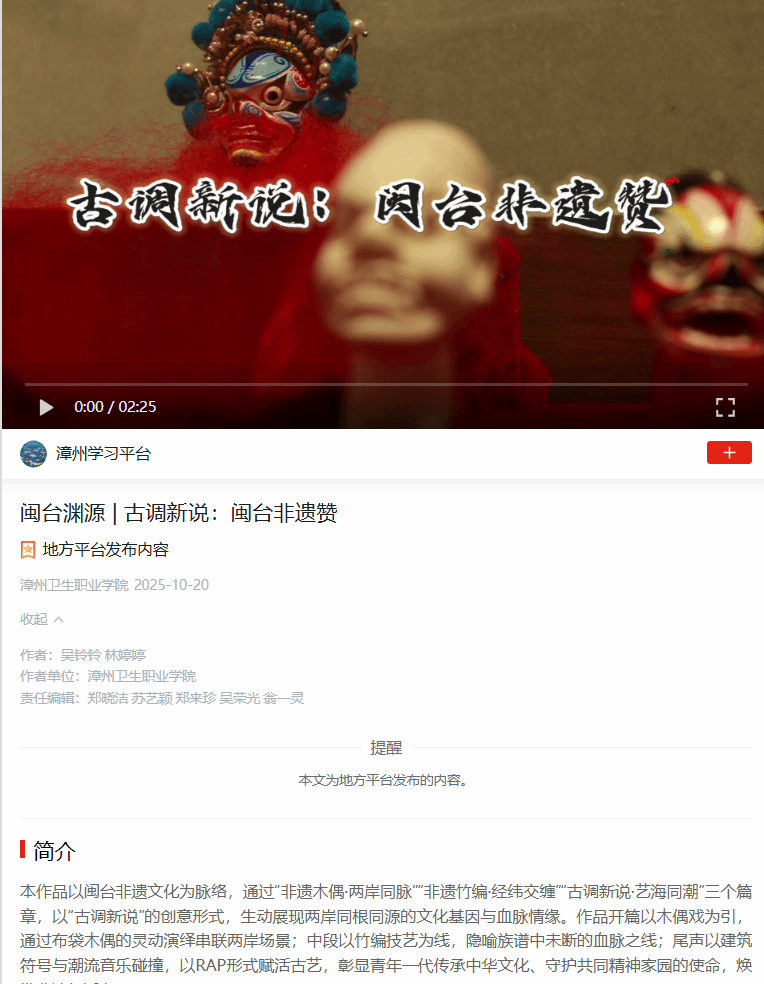 学习强国:闽台渊源|古调新说:闽台非遗赞