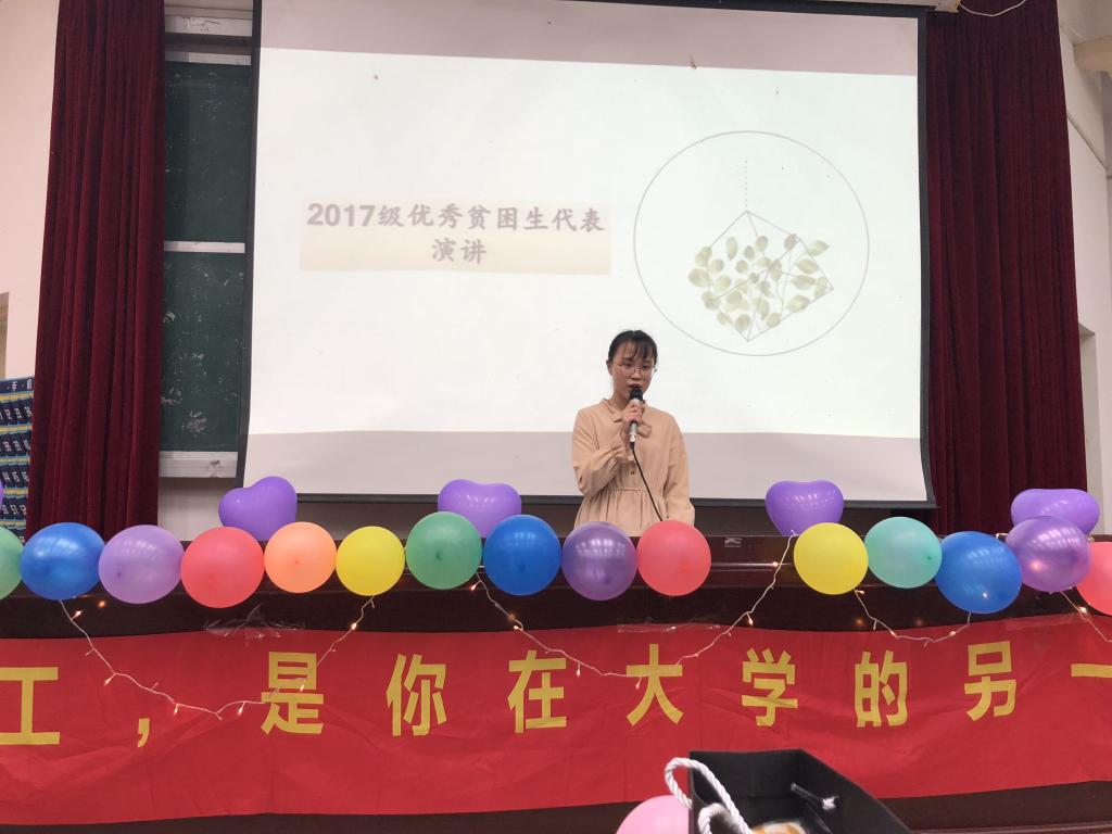 本次贫困生交流大会包括优秀贫困生代表演讲、“资助政策”有奖知识竞答、老师解答疑惑等环节。优秀贫困生代表杨梦鑫和陈妙燕在演讲中分享了他们的励志事迹和学习经验,旨在鼓励大家正确认识和对待贫困,树立战胜困难的勇气和信心;知识竞答则为同学们普及了资助相关知识,使得现场活动气氛高涨;最后老师们也为现场的贫困生一一解答疑惑,活动在同学们大合唱歌曲《追梦赤子心》中圆满结束。