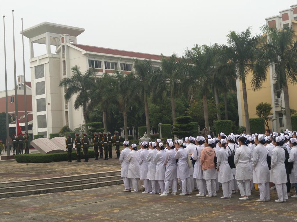 4月16号早晨,迎着朝霞,沐浴着和风,护理系16级全体学生在旗台下举行了庄严的升旗仪式。