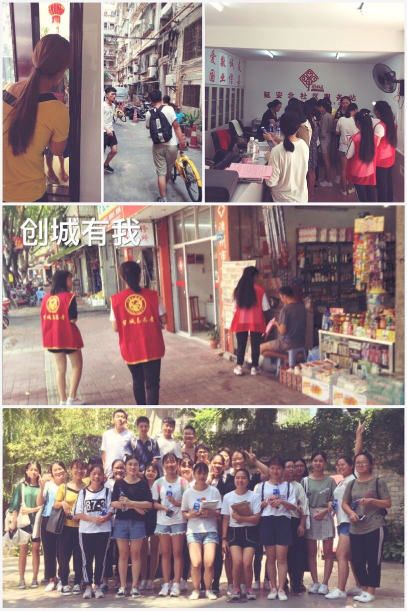 为积极响应漳州创建文明城市工作,漳州卫生职业学院作为漳州创城的重要力量积极响应,率先成为其支持者、参与者和实践者。2017年9月20、21日,我系17级高护一班、四班全体新生利用课余时间到芗城区通北街道延安北社区和东铺头街道东铺头社区参与平安创建活动。