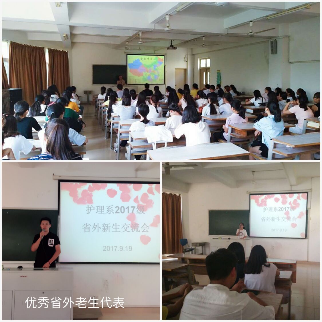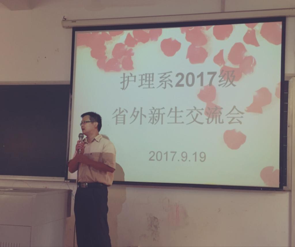 为了帮助护理系2017级省外新生尽快适应大学生活,转变角色,明确方向,树立目标,我系于9月19日下午在7号楼二楼多媒体教室召开了省外新生交流会。系党总支副书记蔡韶滨,学工办主任张文钦,新生辅导员以及2017级近80名省外新生参加了本次交流会,会议由辅导员曾繁涛主持。