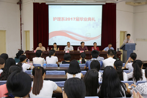 6月24日上午,护理系在4号楼3教隆重举行2017届毕业典礼。学院房立平副院长、教务处处长、系部领导班子、家长委员会代表、教研室主任、辅导员、班主任及2017届毕业生代表共300余人共同参加此次毕业典礼。典礼由系学工办主任主持。