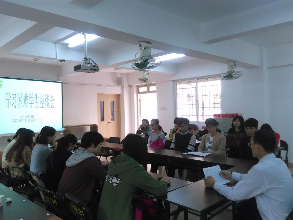 4月5日下午,在护理系会议室召开了本学期第一次学习困难学生座谈会,参加座谈会的人员有帮扶教师、教学秘书以及11名学习困难学生,会议由系副主任主持。